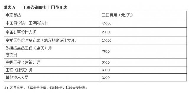 1:專(zhuān)家等級(jí)相應(yīng)工日費(fèi)用詳見(jiàn)附表五《工程咨詢(xún)服務(wù)工日費(fèi)用表》